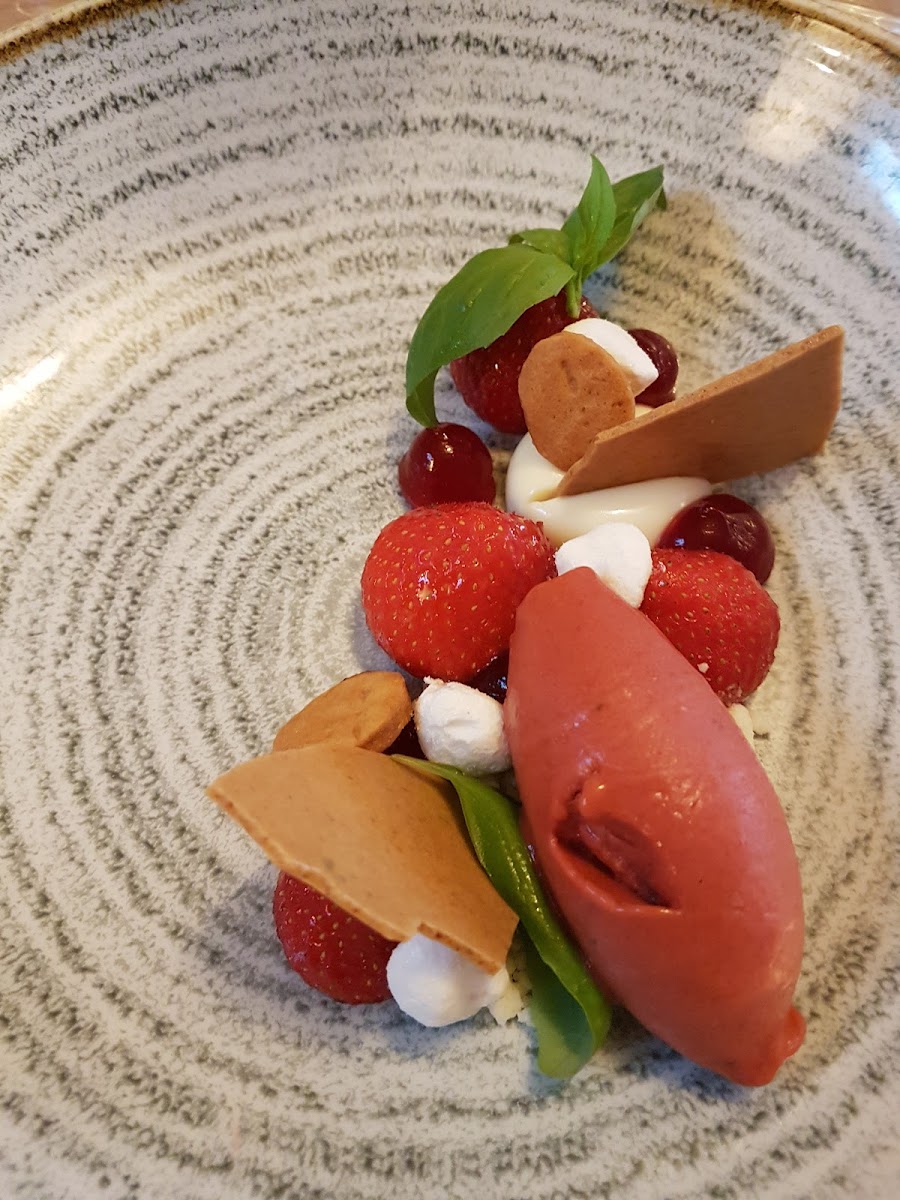 For those with a sweet tooth, the dessert offering is a must-try: "Dessert Af Friske Jordbær Koldskål Og Basilikumsorbet" (fresh strawberries with buttermilk soup and basil sorbet). It’s a refreshing, light dessert that’s perfect for a summer evening. The balance of sweetness from the strawberries and the tangy, herbal twist of basil creates a memorable combination that keeps guests coming back for more.